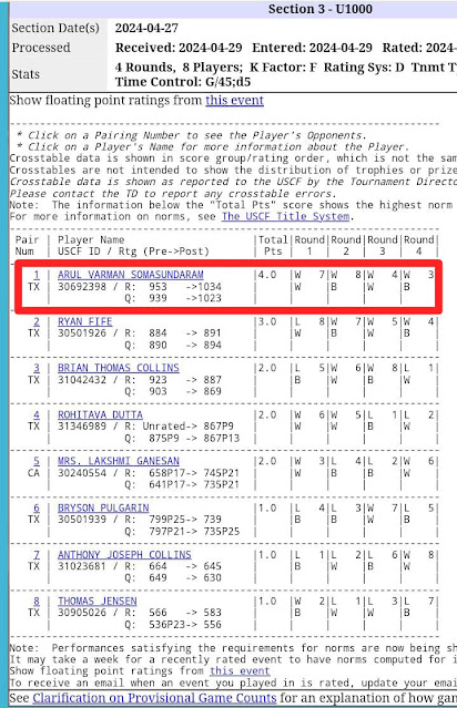 He got 1st position in Temple Chess Club Tournament in Texas...